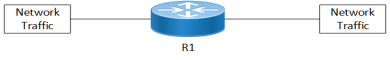 A network traffic simulator device connects to a router (R1) to generate and send various types of network traffic. The router, which has CoPP configured, manages and limits traffic destined for its CPU using multiple CPU queues with specific properties for different control traffic types. Another traffic simulator device connects to the router to generate or receive traffic, testing the router's CPU queues and CoPP configurations to handle different traffic loads and types.