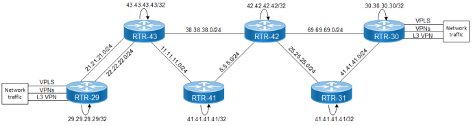 R(t)> 29.29.29.29/32 1 5001 Yes LSP_DEFAULT 24322 xe41 41.41.41.31